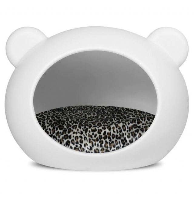 GUISAPET plastový pelíšek s leopard polštářem - bílá